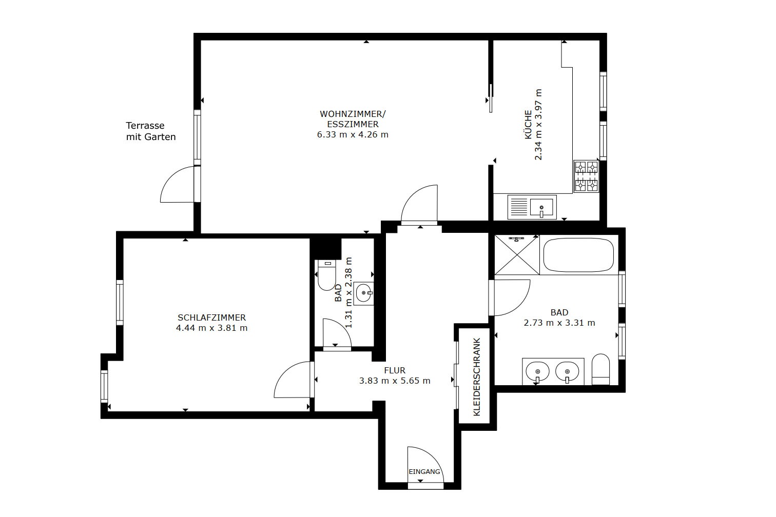 • Terrasse + eigener Gartenanteil