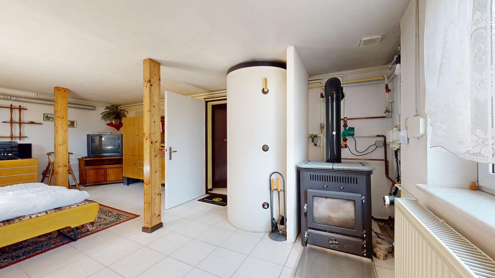 Die Beheizung erfolgt über einen wassergeführten Kamin als Zentralheizung mit einem ca. 1.000 Liter Pufferspeicher. Ergänzend steht im Erdgeschoss ein weiterer Kamin im Wohnbereich zur Verfügung. Das Haus ist wärmegedämmt.