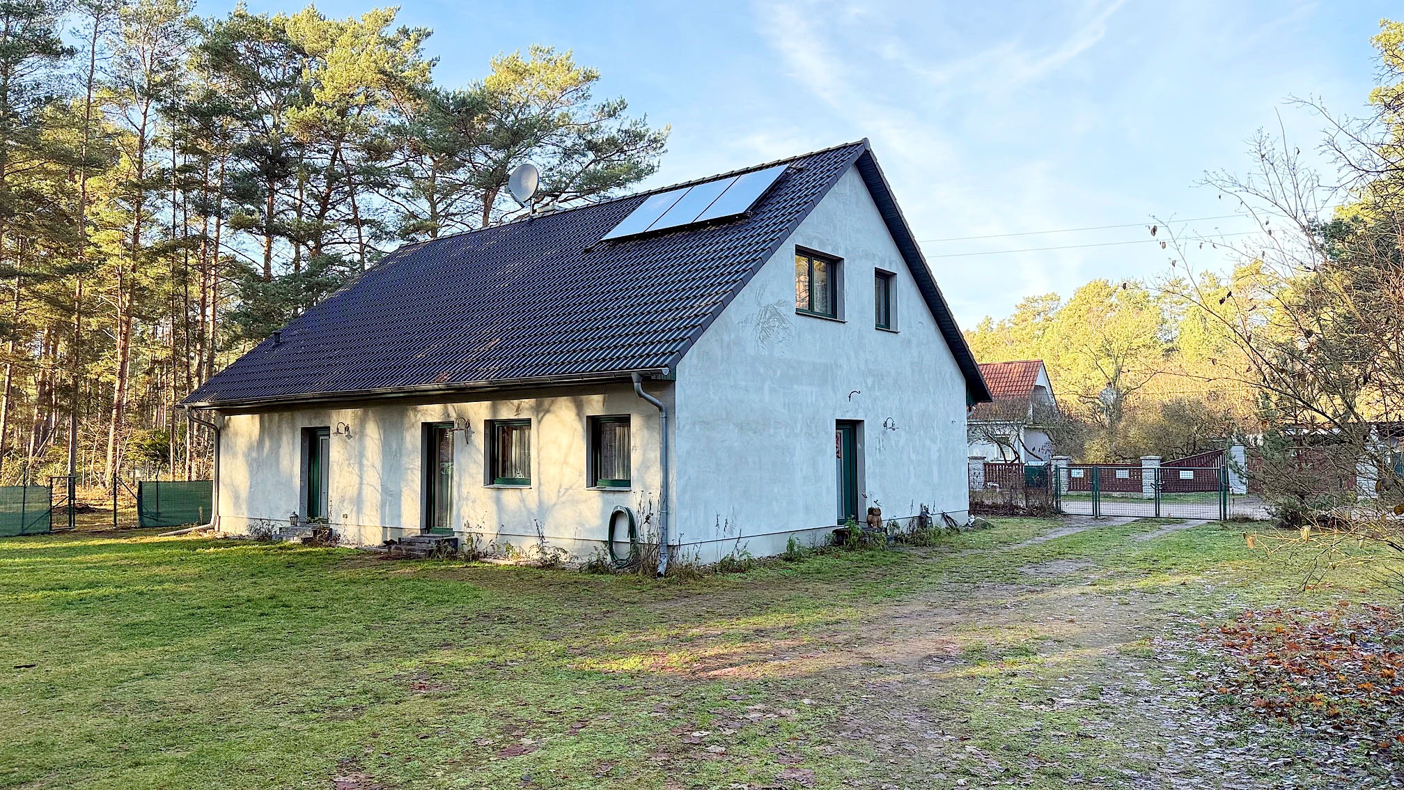 Die Immobilie liegt in einer ruhigen Nebenstraße am Rand des Kiefernwaldes – typisch für Borkwalde. Der Ort gehört zu den beliebtesten Waldgemeinden im südwestlichen Speckgürtel Potsdams und ist bekannt für seine naturnahe, sichere Wohnlage.