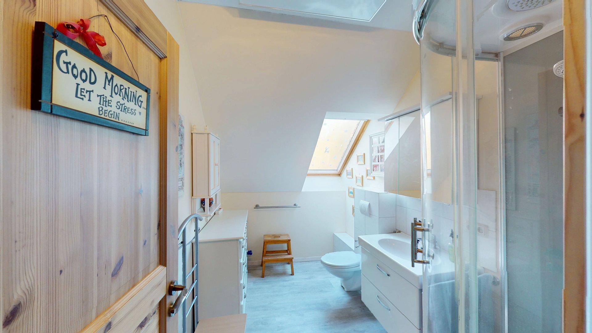 Im Obergeschoss stehen weitere Zimmer sowie ein drittes Badezimmer mit Dusche zur Verfügung. Dieser Bereich wurde ursprünglich für Kinder und eine mögliche Einlieger- oder Pflegewohnsituation geplant, weshalb die Fläche sehr flexibel nutzbar ist.
